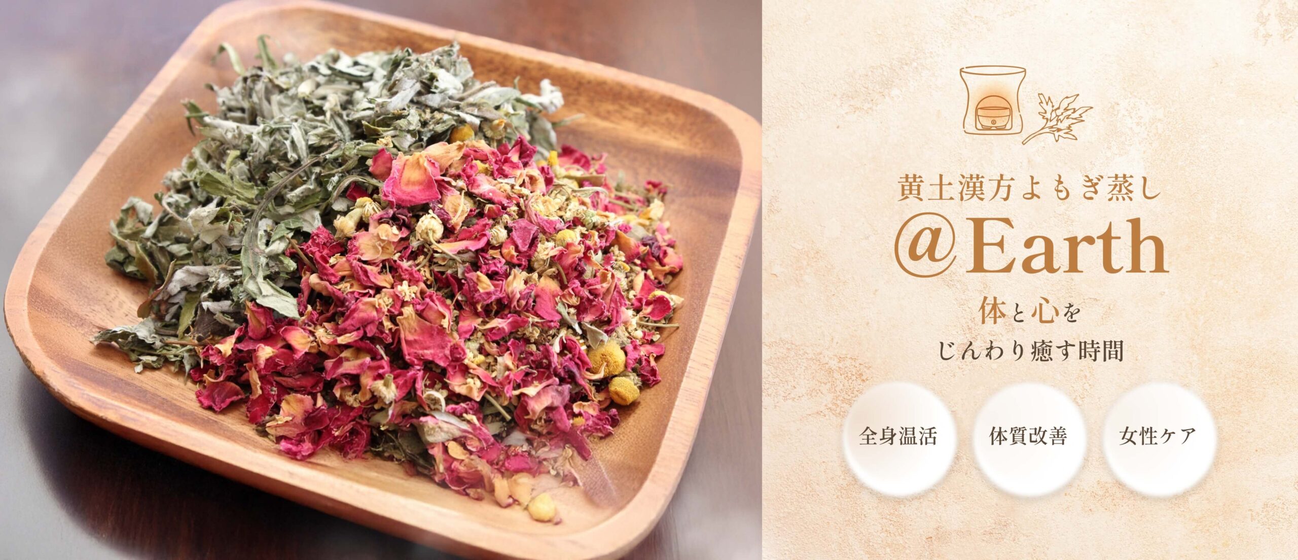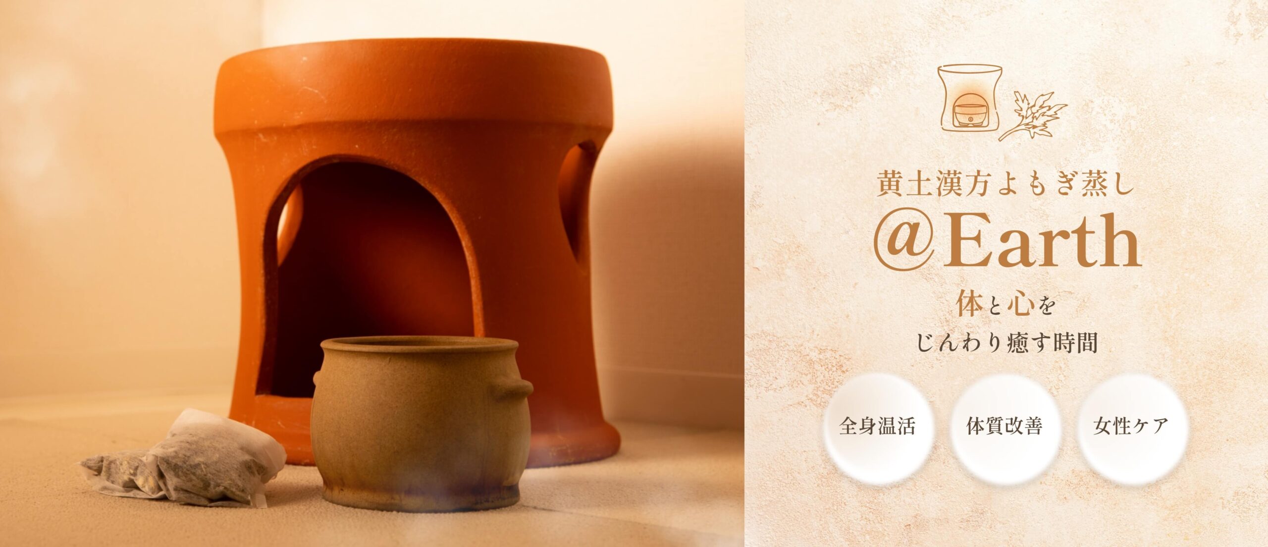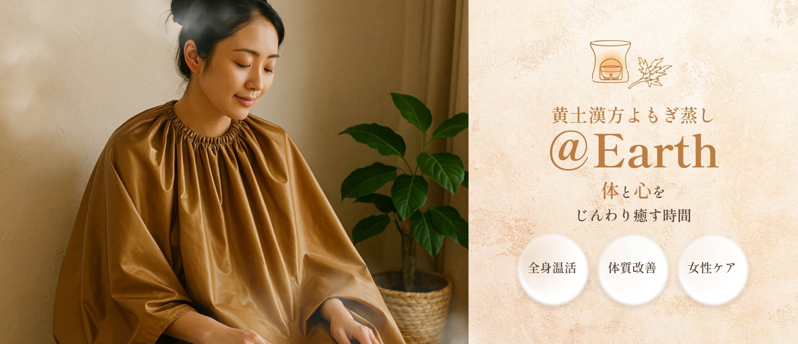 黄土漢方よもぎ蒸し@Earthは生まれました。